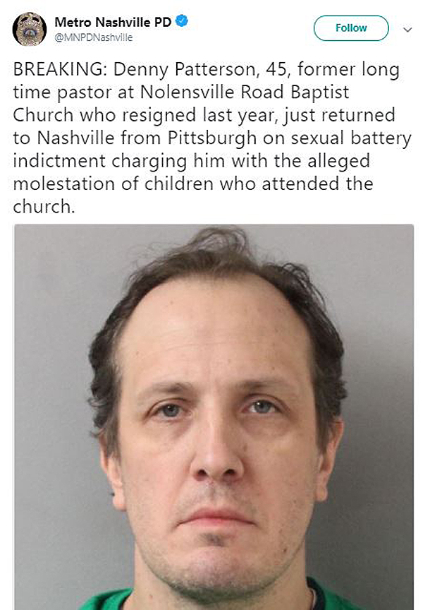 45-летний пастор из Нэшвилла (Теннеси) Дэннис Паттерсон (Dennis Patterson), известный своей ненавистью к ЛГБТ, был арестован по обвинению в растлении малолетних.