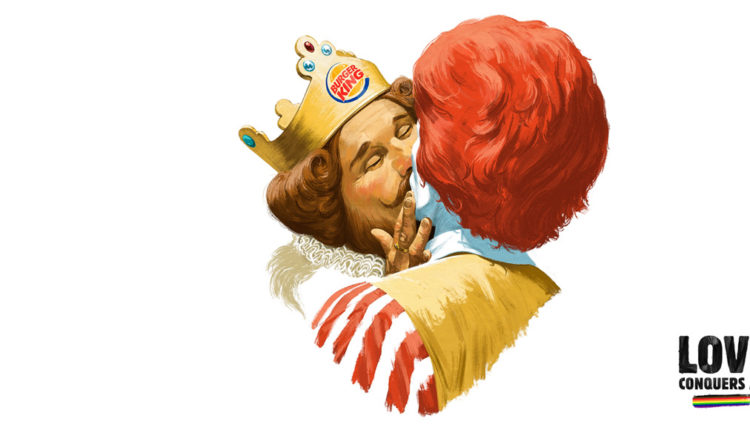Во время недели Прайда в Хельсинки Burger King заявил о своей любви к конкуренту, представив постер со словами «Любовь побеждает все».