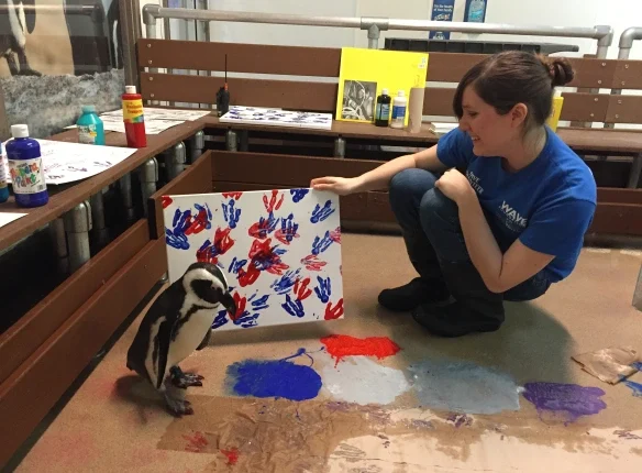 Грін Бін також талановита художниця, як і деякі з її пернатих подруг. Акваріум Ньюпорт створює витвори мистецтва, дозволяючи пінгвінам бігати по фарбі та паперу, пояснюючи: “Збагачення полягає в тому, щоб забезпечити тваринам стимулююче та складне середовище, предмети та заняття. Воно спрямоване на підвищення їхньої активності та забезпечує розумову стимуляцію для пінгвінів. Хто б не розважався, тупочучи та розбризкуючи фарбу?!”