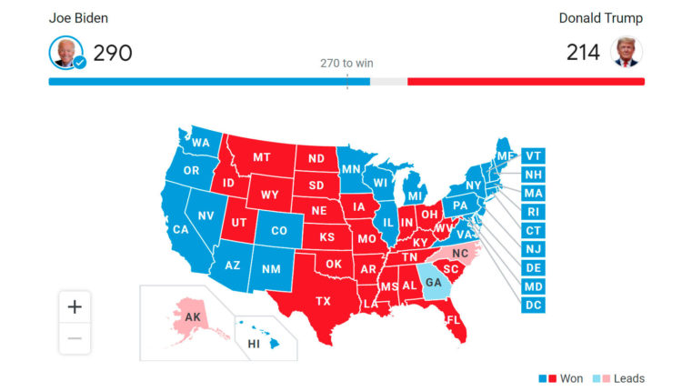 Накануне ведущие американские СМИ массово признали Джо Байдена (Joe Biden) 46-м президентом США. Сообщается, что Байдена уже поздравили лидеры других стран мира, среди которых Ангела Меркель, Джастин Трюдо, Борис Джонсон и многие другие.