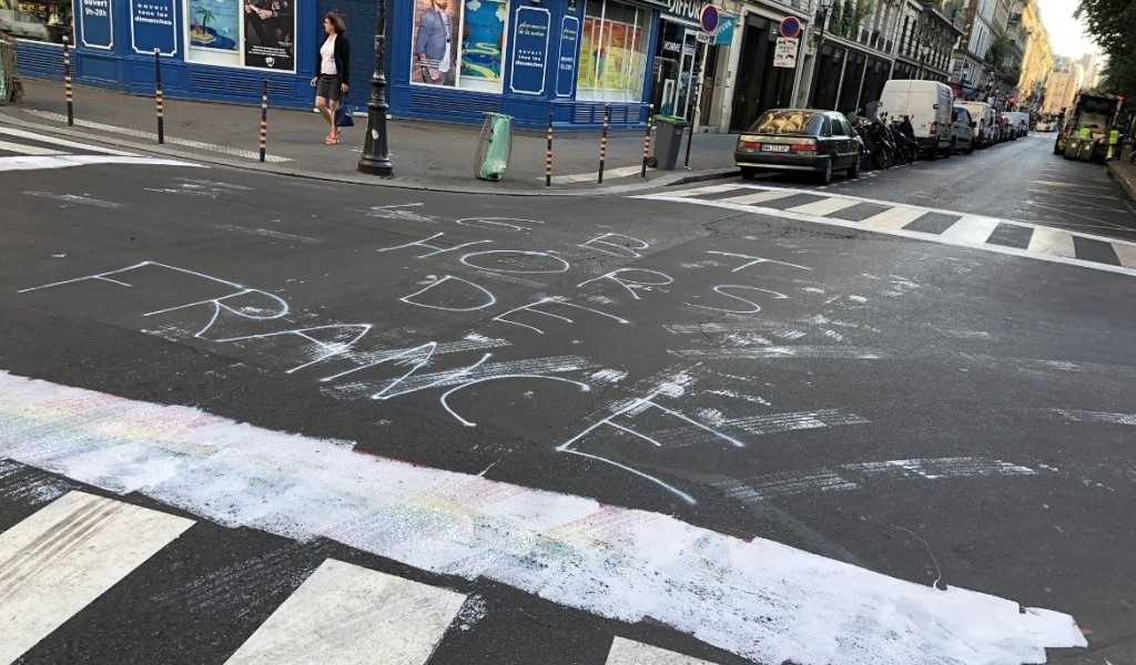 Агентство Francetvinfo сообщило о том, что за пять дней до прайда, радужная раскраска дорог под флаги ЛГБТ исчезли с перекрёстков Парижа. Их закрасили белой краской и оставили надписи «ЛГБТ за пределами Франции».