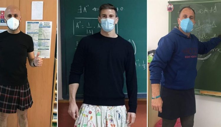 Испанцы-учителя пришли на работу в юбках, протестуя против исключения ученика из школы
