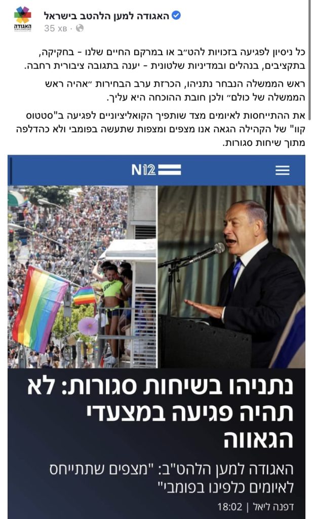 ЛГБТ-асоціація опублікувала скріншот цієї новини, написавши, що вони очікують від Нетаніягу публічної заяви, а не «витік із приватних розмов».