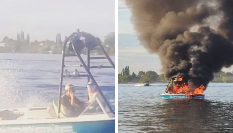 Сообщается, что трое пассажиров катера находились в лодке семьи, пока службы быстрого реагирования тушили их пылающий катер. Во время аварии никто не пострадал.