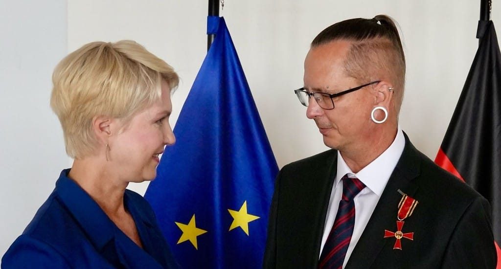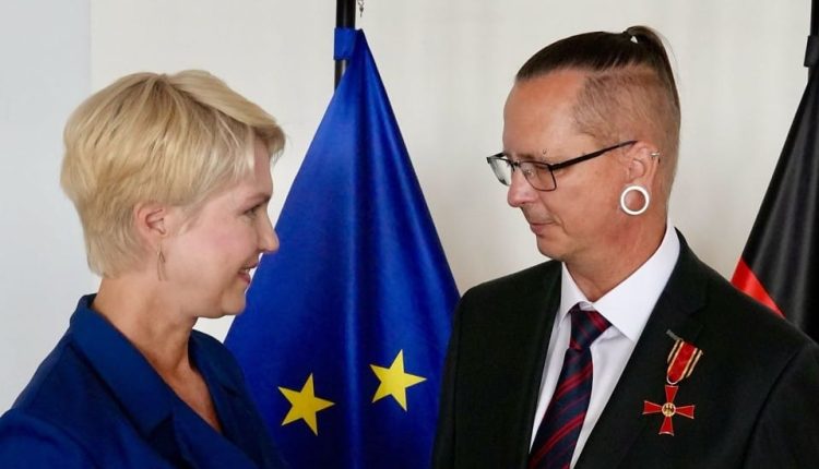 Прем’єр-міністерка Мануела Швезіг (СДП) у середу в Шверіні нагородила квір-активіста Фалька Купа Хрестом за заслуги на стрічці Федеративної Республіки Німеччина.