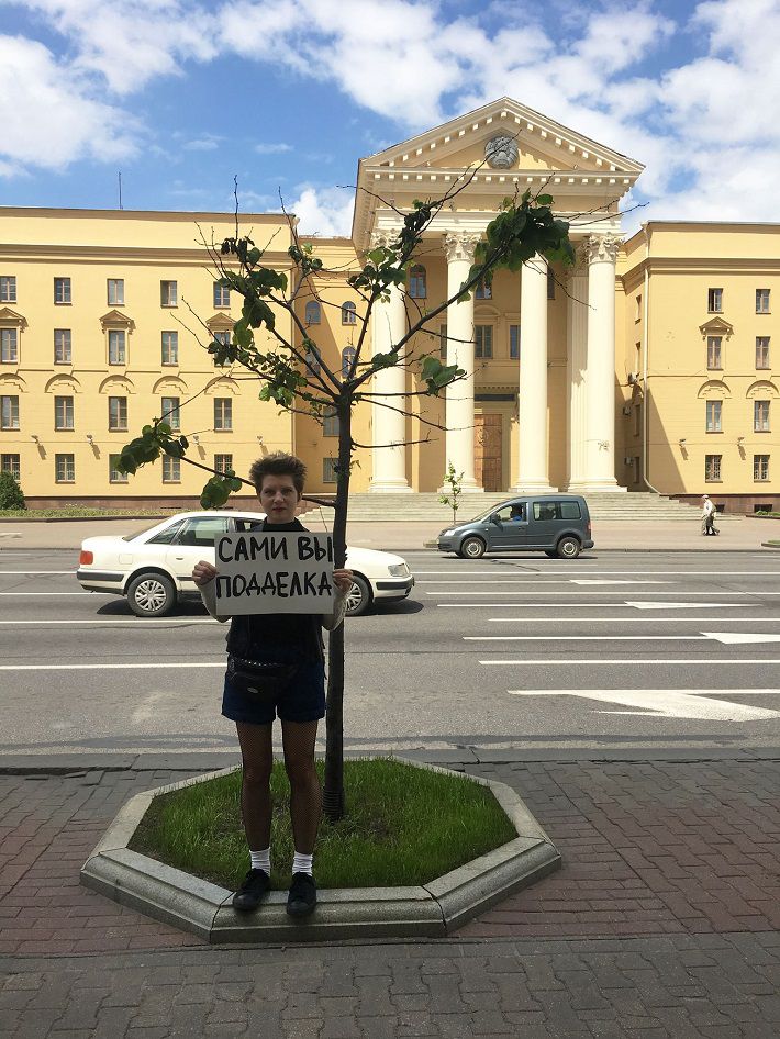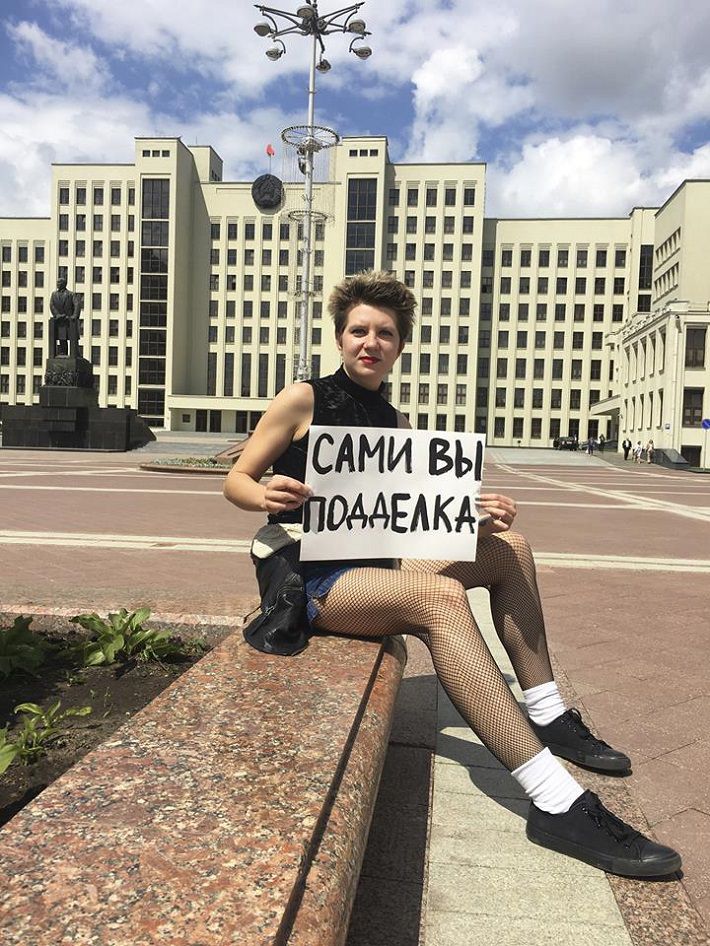 24.05.2018 в Минске ЛГБТ-активистка Виктория Биран вышла с плакатом, на котором было написано «Сами вы подделка», к зданию Министерства внутренних дел (МВД) Республики Беларусь.