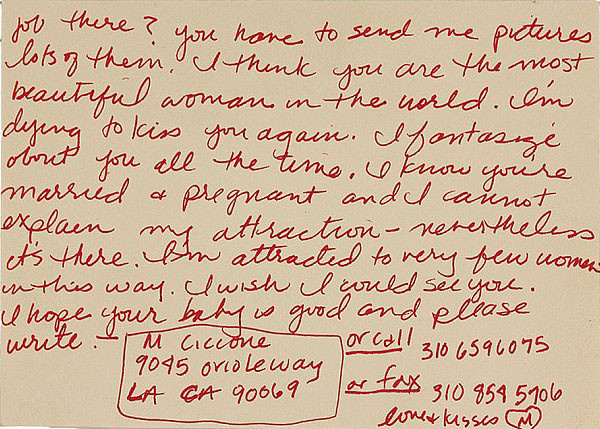 “Я знаю, что ты замужем и беременна, и я не могу объяснить свою одержимость, но тем не менее она есть”, — писала знаменитость, изнывая от страсти.