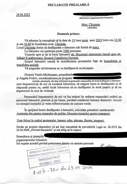 Нагадаємо, 15 червня за десять хвилин до початку ходи вулиця Букурешть залишалася відкритою для транспорту. Поліція не перекрила маршрут, як це робилося в минулі роки, і навіть намагалася переконати присутніх, що захід не має дозволу. Однак один з організаторів заходу, Василе Міклеушану, показав погодження від примарії.