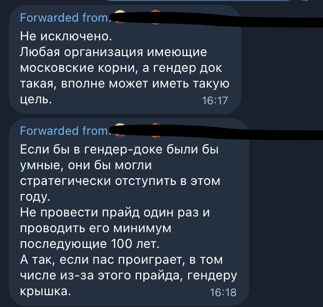 Ще одна категорія звинувачень з’явилася в коментарях у телеграм-каналі nokta — нібито ЛГБТ-марш дестабілізує країну, а його організатори «працюють на Москву».