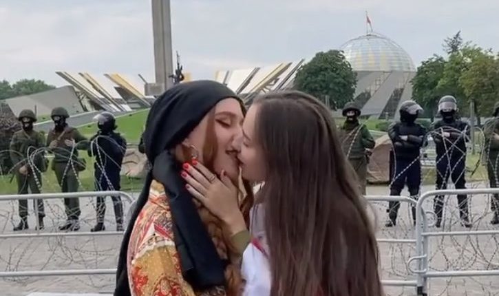 Несмотря на враждебность и гомофобию в Беларуси, некоторые активисты ЛГБТ всё же выходили на акции протеста с радужными флагами. 23 августа  во время массового митинга у Стелы (часть архитектурно-скульптурного комплекса “Минск — город-герой”) напротив цепи ОМОН вышли две девушки и поцеловались.