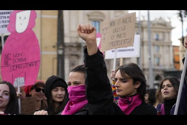 Тысячи манифестантов вышли в субботу на улицы Рима, чтобы выразить свой протест против насилия в отношении женщин. Это часть 16-дневных глобальных демонстраций активистов борьбы против гендерного насилия.