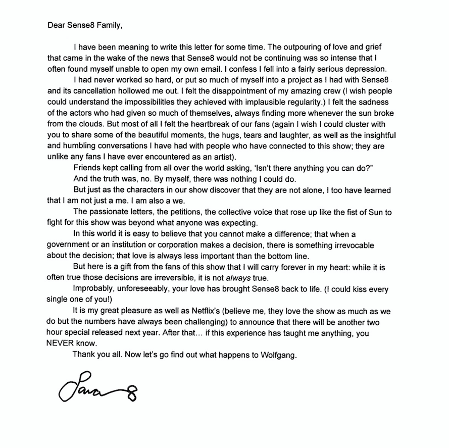 Sense8 получит двухчасовой спецвыпуск, который выйдет в 2018 году. Будет ли спецвыпуск действительно точкой в истории сериала? Тут уж нельзя знать наверняка, даже официальное объявление не отрицает возможного продолжения Sense8.