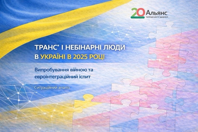 Альянс громадського здоров’я представив ситуаційний аналіз «». У дослідженні розглядається, з якими проблемами стикаються трансгендерні та небінарні люди в Україні в умовах повномасштабної війни, а також як процеси євроінтеграції впливають на захист їхніх прав.