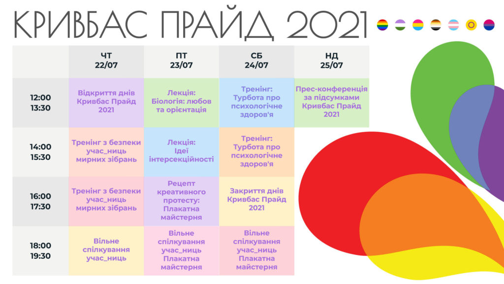 Организаторы КривбасПрайд 2021 на своей страничке в социальной сети facebook  выложили расписание мероприятий прайда.