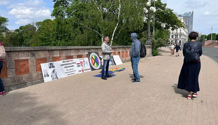 Одиночний пікет у Ризі проти ЛГБТ і розтоптаний прапор Євросоюзу