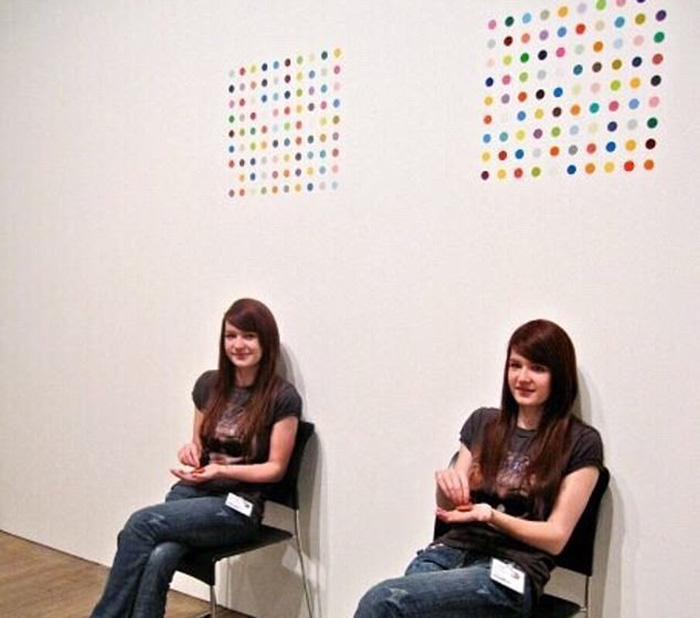 Спадж (слева) и Рози принимают участие в перфомансе Демиена Херста.