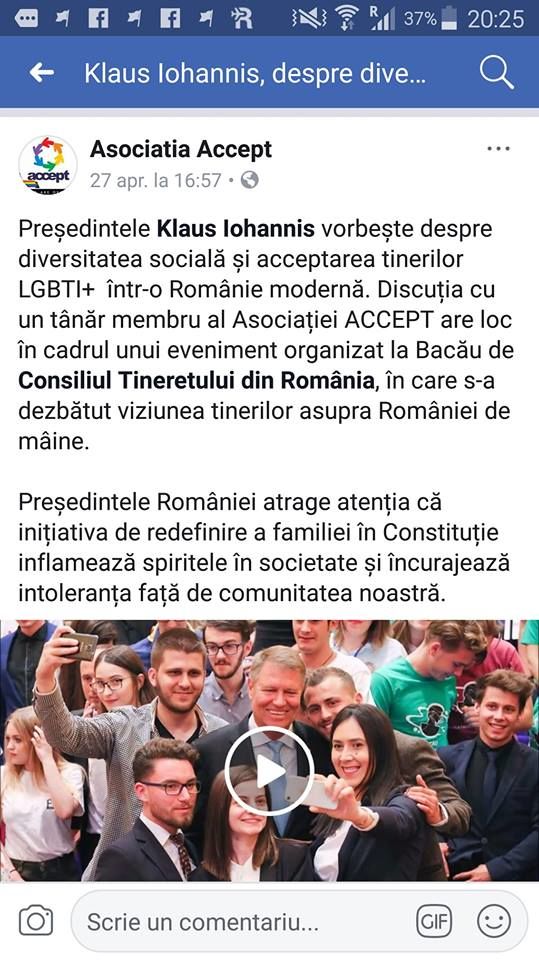 Президент Румынии Клаус Йоханнис заявил, что будет добиваться через парламент, чтобы дискриминация геев и лесбиянок была исключена на законодательном уровне.