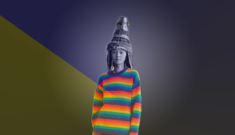 А ещё она дизайнерка и делает одежду на заказ, недавно связала свитер и шарф с радужным принтом.