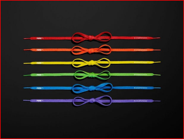 Puma призывает по-новому завязывать шнурки, чтобы продемонстрировать своё уважение к представителям ЛГБТ-сообщества и поддержать однополые браки. На специальном сайте Puma поделилась инструкциями о том, как завязать узел равенства, а сама кампания проходит под тегом #LetUsAllTieTheKnot.
