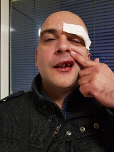 Пострадавший 39-летний Илья Вучевич говорит, что на него напали, потому что он нес розовую сумку для перевозки собак. Он потерял три зуба и получил порезы и ушибы.