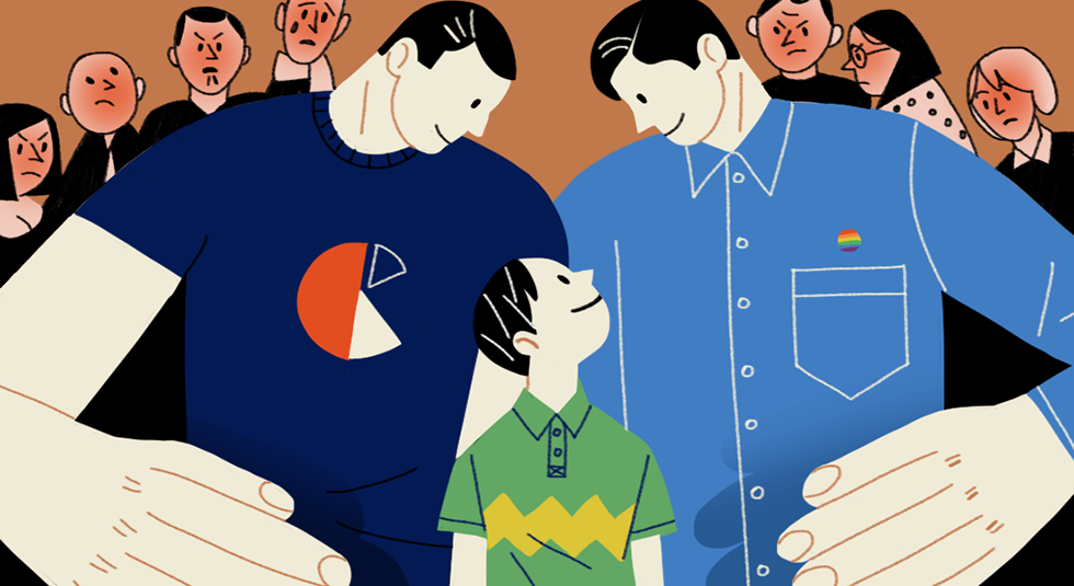В России, как и в других странах СНГ, нельзя заключать однополые браки, а представители ЛГБТ-сообщества регулярно сталкиваются с агрессией и преследованием. Есть и популярное мнение, что однополым парам нельзя иметь детей: потому что гомосексуальность — это «заболевание психики» (на самом деле нет), «такие люди духовно больны» и дети в таких семьях якобы обязательно вырастут геями. Даже те, кто осуждает другие формы дискриминации ЛГБТ, порой считают, что им нельзя доверять детей, потому что «ребенок должен воспитываться в классической семье» — такой, какая «нарисована на упаковке сока». «Медуза» поговорила с людьми, которые выросли в однополых парах, — о том, повлияло ли это на их самоидентификацию и сексуальную ориентацию и как к этому относились окружающие.