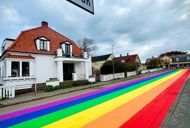 Близько 170 м проїжджої частини однієї з центральних вулиць міста Хьоганес у Швеції було розфарбовано в кольори райдужного прапора ЛГБТ, повідомили 6 травня в шведській газеті Expressen.