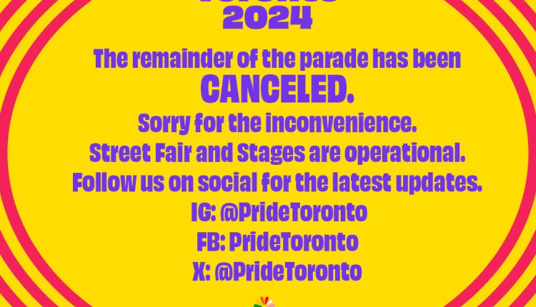 О 18:38 організатори параду повідомили в соціальній мережі X про скасування решти свята. “Вибачте за незручності”, – йшлося в повідомленні Pride Toronto.