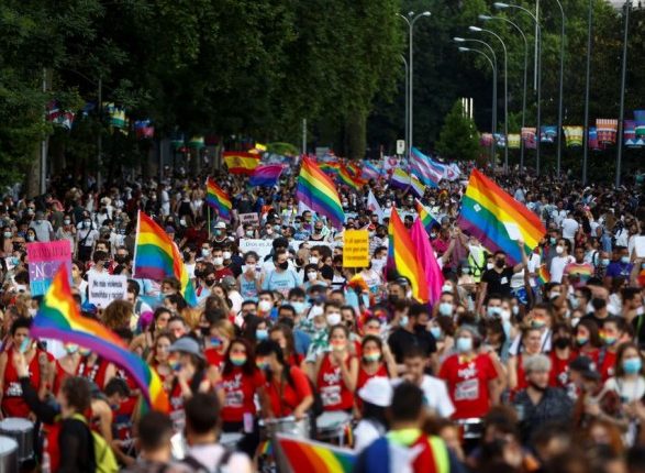 Тысячи людей танцевали, били в барабаны и размахивали флагами по улицам Мадрида на Марше равенства — ходе в защиту прав ЛГБТ-сообщества. Многие носили радужные маски для лица. Как правило, это одно из крупнейших в мире ЛГБТ-событий, в этом году из-за ограничений в связи с COVID-19, имело ограничение в 25000 участников.