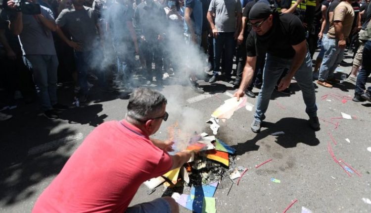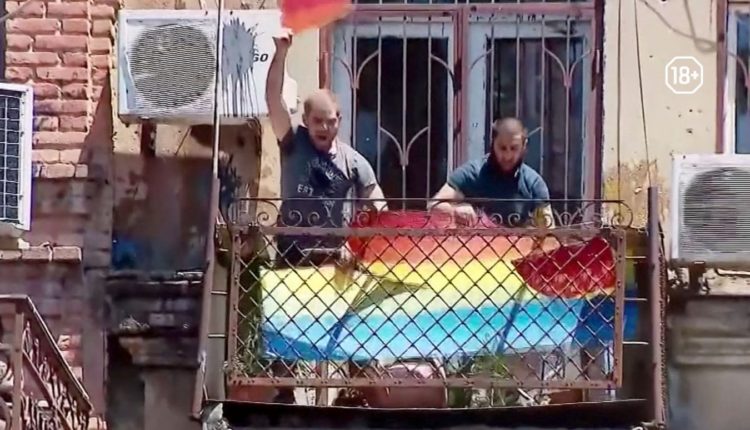 В понедельник противники шествия забрались через балкон в офис организации “Тбилиси прайд”, сорвав расположенный там радужный флаг и постер.