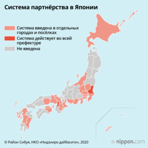Согласно опросу, проведенному районом Сибуя в сотрудничестве с НПО «Нидзииро дайбасити», до 30 сентября 2020 года систему партнёрства внедрили 59 муниципалитетов по всей стране, и за последние пять лет в местные органы власти за сертификатом партнёрства обратилась 1301 пара.