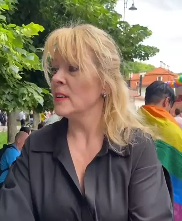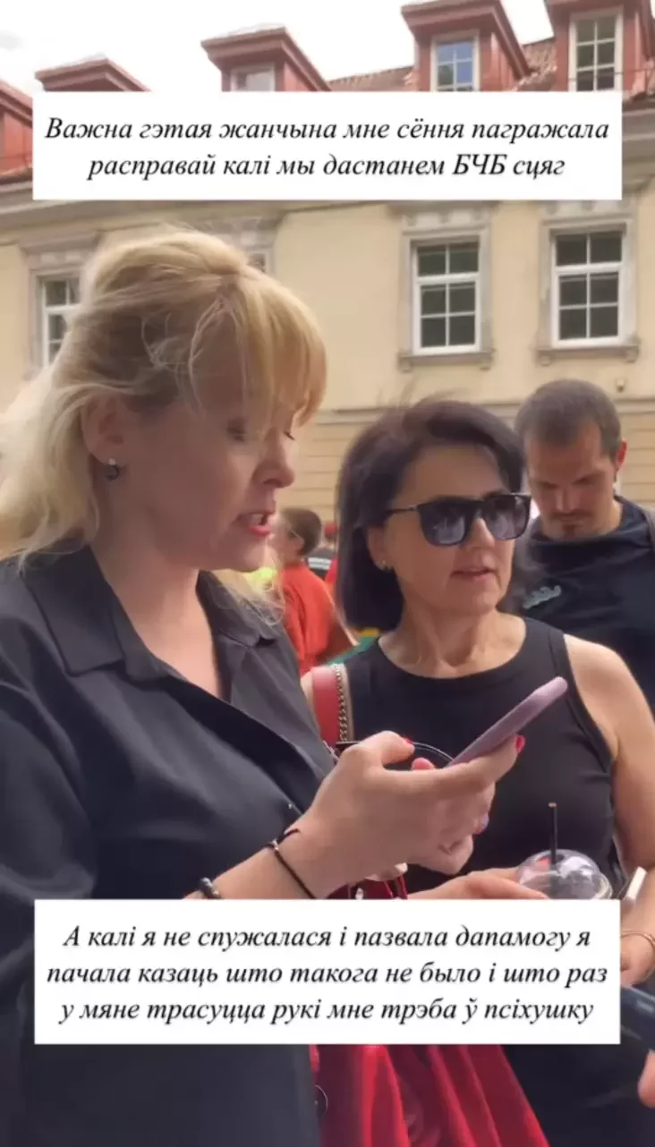 Базар каже, що Трусова і Пуцикович заявили, що вони прийшли на прайд з “повідомленням” від білоруських вояків — мовляв, ті забороняють використовувати біло-червоно-білий прапор. Після цього вони почали знімати учасників на відео, коментуючи: “Давай, знімай — щоб потім усіх ідентифікували“.