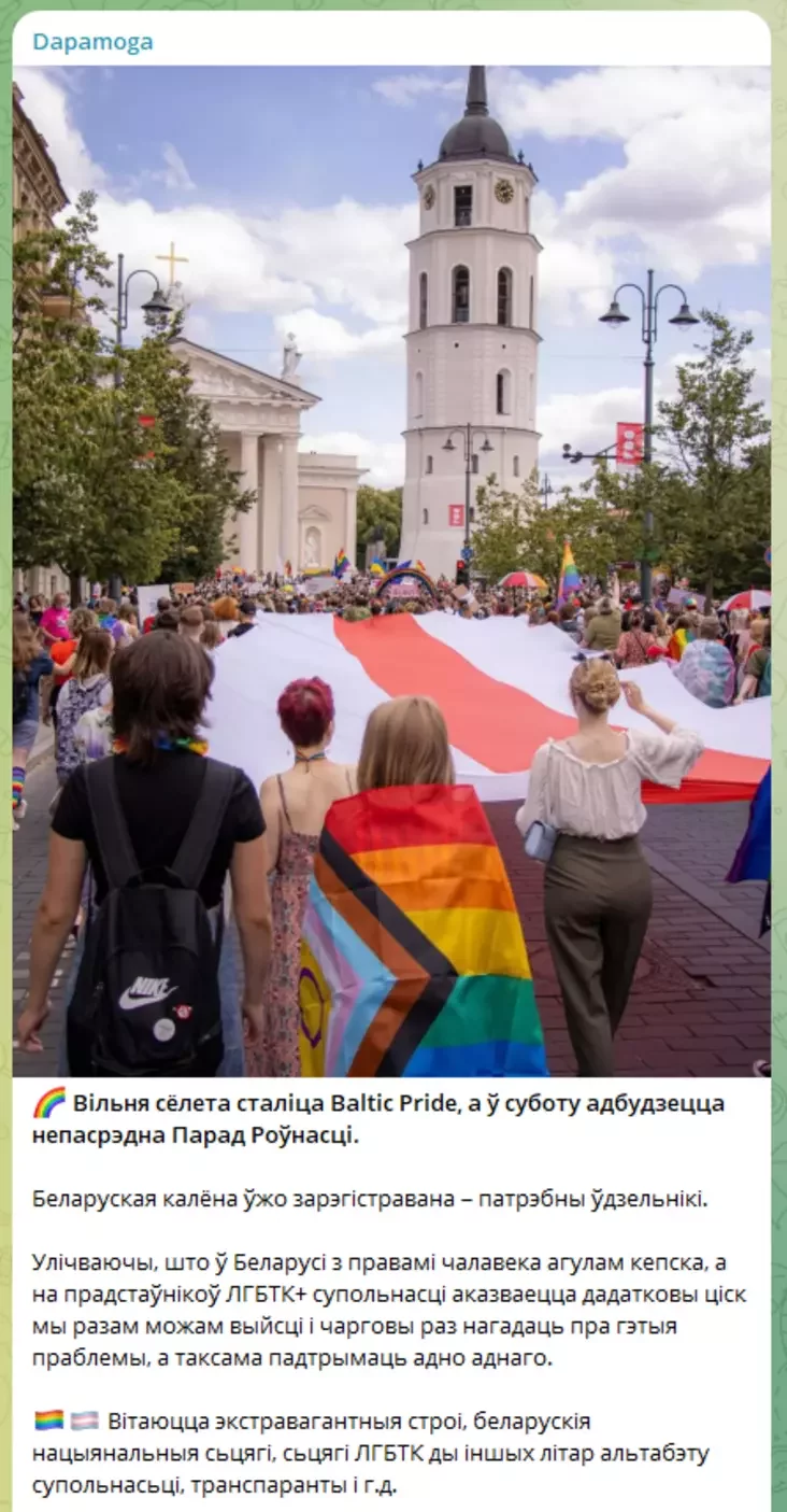 Історія конфлікту на прайді у Вільнюсі розпочалася за кілька днів до його проведення. 4 червня телеграм-канал “Дапамога” опублікував допис, у якому фонд запрошував білорусів взяти участь у Марші рівності, щоб нагадати про проблеми представників ЛГБТ-спільноти, на яких у Білорусі чиниться додатковий тиск, і підтримати одне одного.