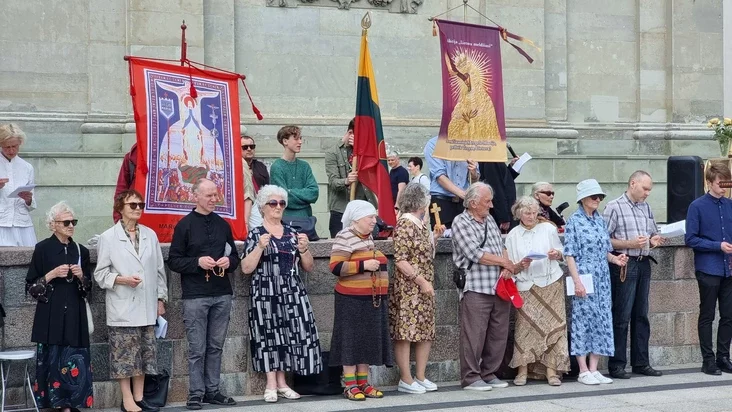 Були й противники прайду — кілька молодих людей з литовськими національними прапорами та два десятки людей похилого віку з хрестами та хоругвами із зображенням Божої Матері Остробрамської. Люди охоче фотографували їх на пам’ять, але з відстані, щоб не провокувати конфлікт.