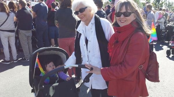 Йоханна Сигурдардоттир (слева) и Йонина Леосдоттир на прайде в 2014 году в Рейкьявике.